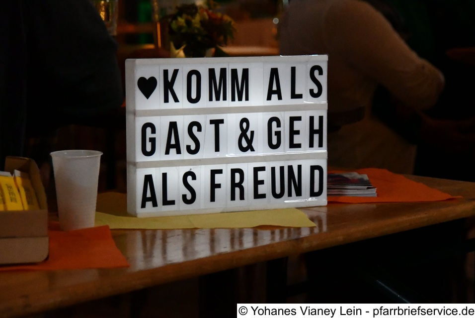 Ich darf Platz nehmen. Ich bin willkommen. Hier sorgt jemand für mich, hier sorgt sich jemand um mich. Wie wertvoll ist diese Erfahrung der Gastfreundschaft. Komm und sei unser Gast! In der Wüste ist Gastfreundschaft Pflicht. Sie sichert das Überleben. Im Buch Genesis lesen wir: In der Mittagshitze empfängt Abraham drei Männer, bewirtet sie mit seiner Frau Sara. Die beiden haben noch keinen Erben. Dieser wird ihnen durch die Gäste verheißen. Gastfreundschaft eröffnet hier einen Weg in die Zukunft, schenkt eine Verheißung des Lebens. Zusammensein mit Gästen kann meinen Horizont weiten. Herzen können sich berühren. Aus Fremden können Freunde werden. Gastfreundschaft erlebt Jesus in Haus von Marta und Maria. Die eine ist ganz Ohr für Jesus, die andere vor lauter Sorge mit Arbeit überlastet.